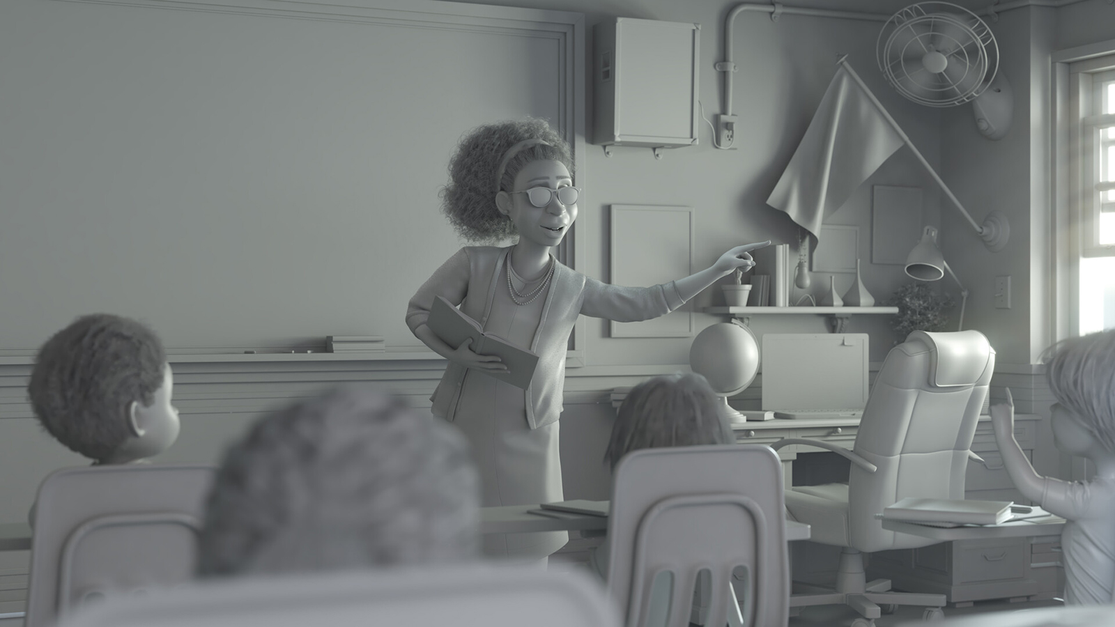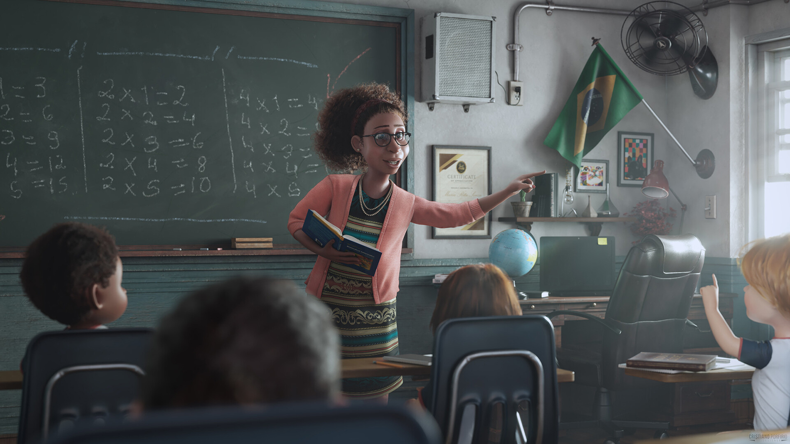 作品「The Classroom」のきっかけは、Pixar の映画『ソウルフル・ワールド』でした。脚本、設定、キャラクターのすべてが素晴らしく、心から感動したのです。そのインスピレーションを自分の作品に活かしたいと思い、『ソウルフル・ワールド』をメインのリファレンスにしながら、他のお気に入りアニメーション作品の要素も織り交ぜることにしました。テーマとして、「先生という職業に敬意を表しつつ、同時にブラジルの特色も表現したい」と考えました。
