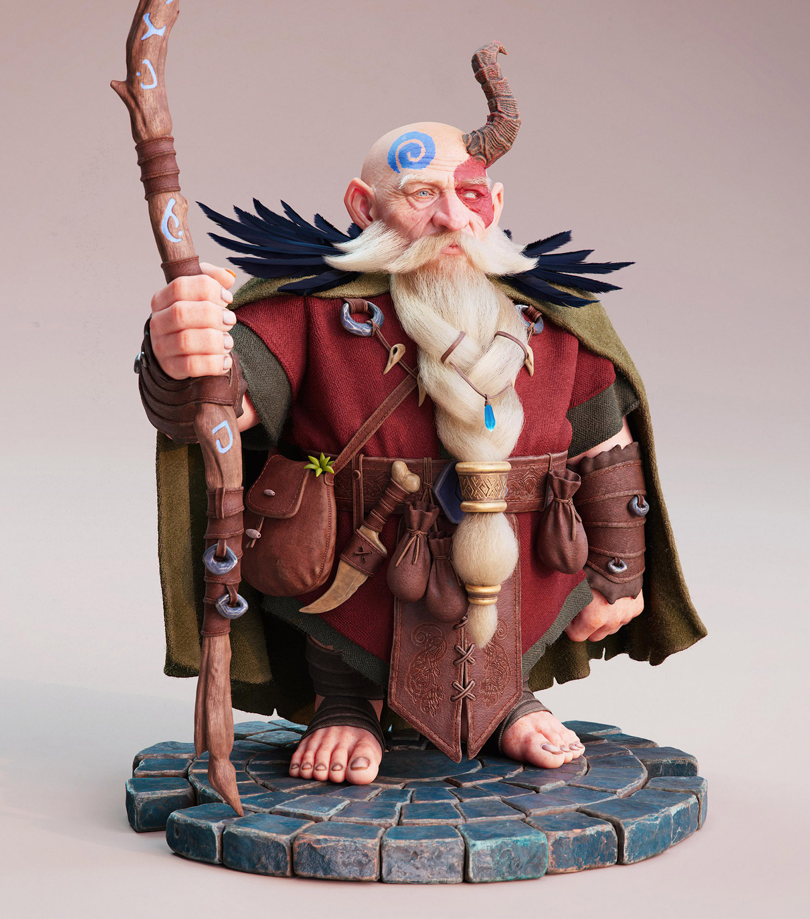 「MERLIN」:Vsevolod Pechenkin のコンセプトアートを基に制作。スカルプティングに ZBrush、モデリングとライティングに Maya、グルーミングに XGen、テクスチャペイントに Substance 3D Painter、レンダリングに Arnold を使用