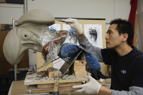 今回は彫刻だけでなく、仕上げまでスーパーバイズしたので『パイレーツ・オブ・カリビアン』の制作の時と同様、非常に大変な思いをしました(※こちら の過去のエピソードを参照)。おそらく、クルーの中で一番忙しかったはずです。しかし、やらされてるのではなく、自分の責任でキャラの仕上げも自由にできたので、その充実感は何事にも代えがたいものがありますね。次回は、撮影に向けたお話をしようと思います。(つづく)