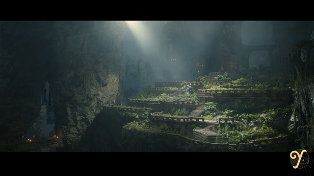 そびえ立つ山々に刻まれた門から、流れ落ちる地下の滝まで、カザド=ドゥームのすべてのショットは魅惑的に作られています。The Yard のチームは、複雑なテクスチャー、ダイナミックなライティング、画期的なエフェクトを融合させながら、250カットにも及ぶ見事なショットで この領域に生命を吹き込み、カザド・デュムをシリーズの壮大なストーリーを語る上で欠かせない存在にしました。