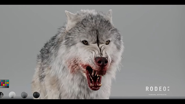 この野生の動物は、キャストとアップのシーンを共有するため、シームレスな統合とリアルなディテールが要求されました。筋肉シミュレーションから、丹念に手入れされた毛皮まで、私たち Rodeo FX のチームはオオカミに鮮烈なリアリズムで命を吹き込みました。(youtube より)