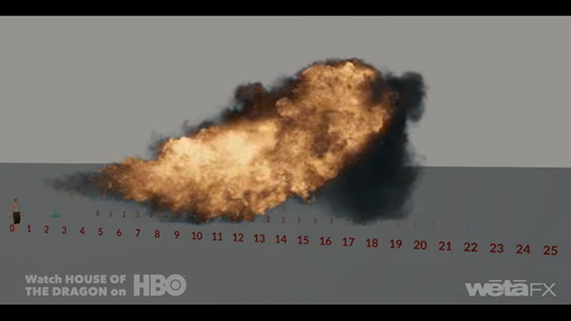 『ハウス・オブ・ザ・ドラゴン』 シーズン2 の エピソード7 で Weta FX が作成した FXシミュレーションを詳しく見てみましょう。ヴァーミサ―の激しいリアクション、ドラゴンモント・ガントリーの実写のファイヤースタントのプレートを融合するために、ドラゴンの炎のシミュレーションを大量に作成しました。さらに、実写の浜辺のシークエンスでは、ドラゴンの重さと存在感を効果的に伝えるために、リアルな砂とのインタラクションが必要であり、これらはすべて、この雄大な獣をウェスタロスの世界に溶け込ませることを目的としています。(youtube より)