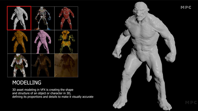 モデリング:VFX における3Dアセットモデリングとは、オブジェクトやキャラクターの形状や構造を3Dで作成し、そのプロポーションや細部を定義することで、視覚的に正確なものに仕上げる作業です。