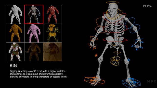 リグ:3Dアセットにデジタルスケルトン(骨組み)と 制御機能を設定し、リアルな動きや変形を可能にすることで、アニメーターがキャラクターやオブジェクトに命を吹き込めるようにする作業のことです。