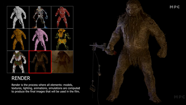 レンダリング:モデル、テクスチャ、ライティング、アニメーション、シミュレーションといったすべての要素を計算し、映画で使用される最終的な映像を生成するプロセスです。