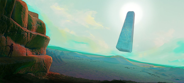 イタリアの Danilo Lombardo 氏 が、巨大なモノリスが置かれたセルシェーディングの SFの風景を制作します